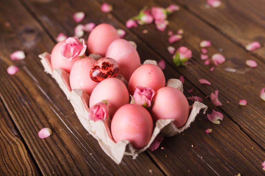 Розовый оттенок получают, варя яйца в воде с добавлением свекольного сока или нарезанной, натёртой свёклы. Красные и розовые оттенки также придадут зверобой, малина, вишня, клюква и арония.