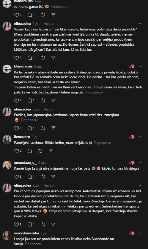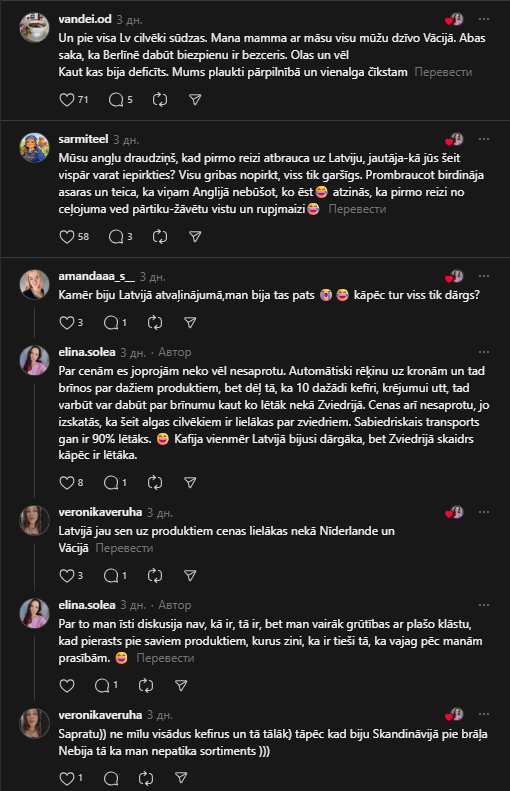“Цены на продукты в Латвии уже давно выше, чем в Нидерландах и Германии”, – написала одна девушка.