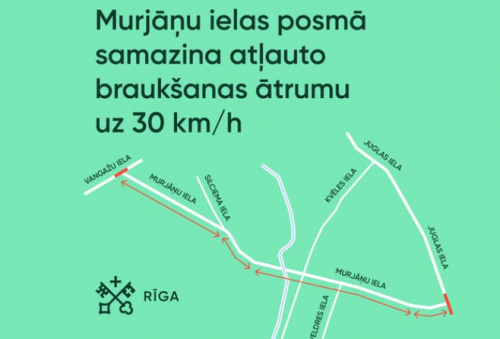 Внимание, водители! Рижская полиция напоминает о снижении скорости до 30 км/ч на улице Мурьяню