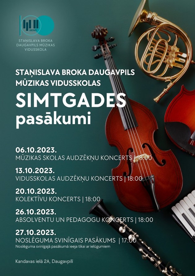 Празднование столетия Даугавпилсской музыкальной средней школы имени Станислава Брока завершится торжественным мероприятием 27 октября в 17.00. Вход на мероприятие – только по приглашениям.