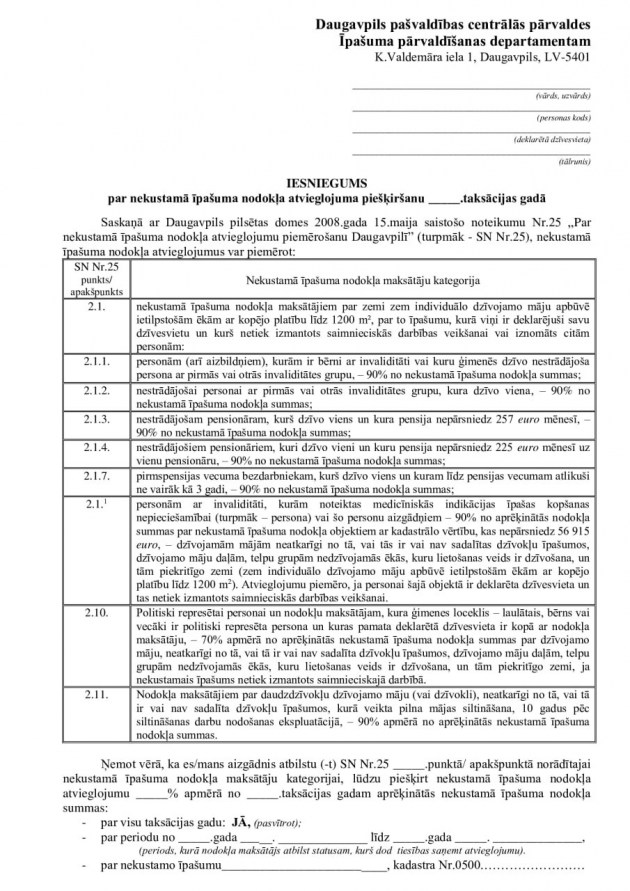 Для получения этой скидки необходимо заполнить заявление (образец есть на странице самоуправления www.daugavpils.lv) и принести его в Думу (ул. Кр. Валдемара 1) или отправить электронно подписанный документ на [email protected].