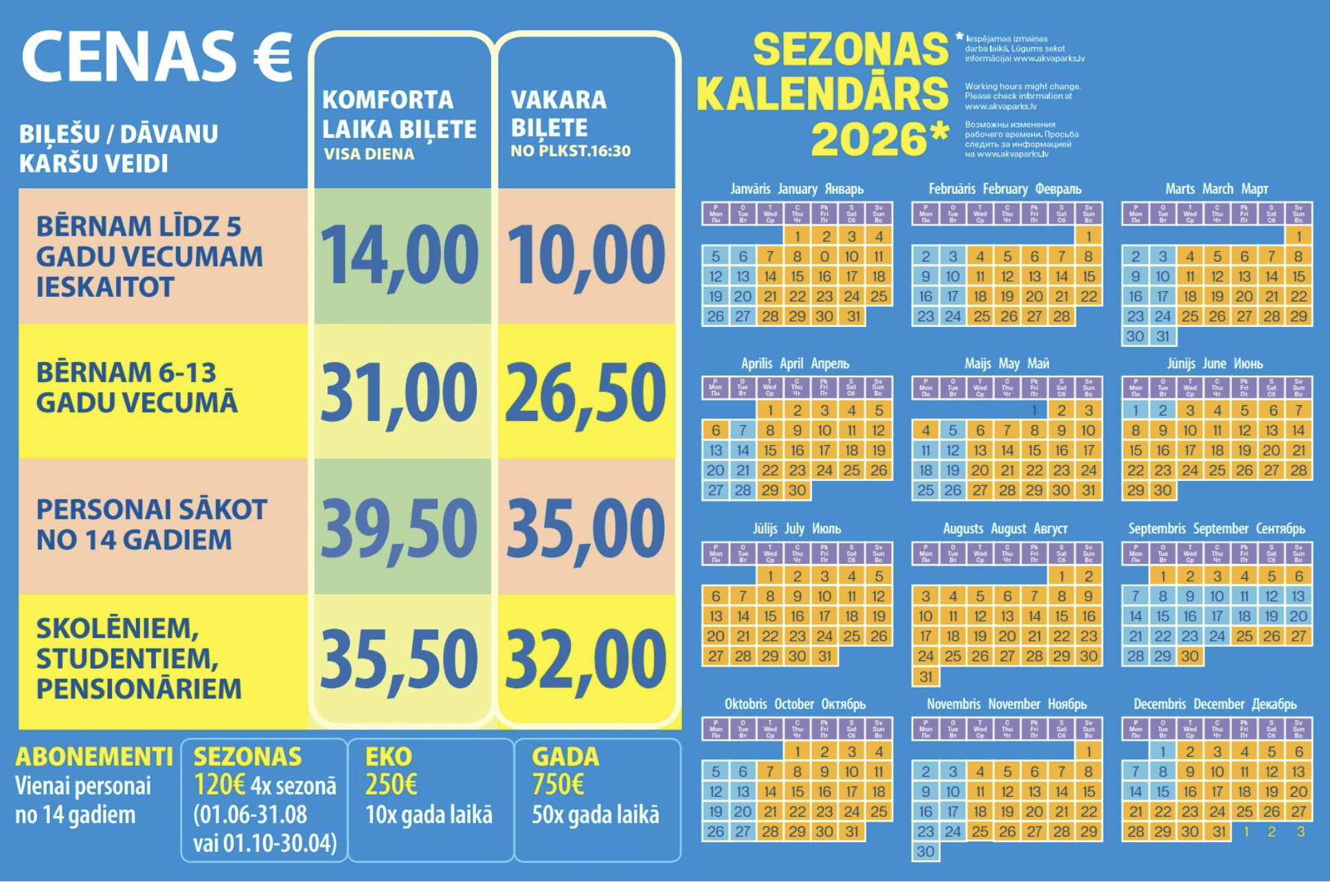 Проверив информацию о ценах, доступную на сайте «Līvu akvaparks», видно, что действительно за входной билет для детей до 5 лет, действительный весь день, нужно платить 14 евро. Это означает, что за младенца или совсем маленького ребёнка тоже приходится расставаться с приличной суммой денег.