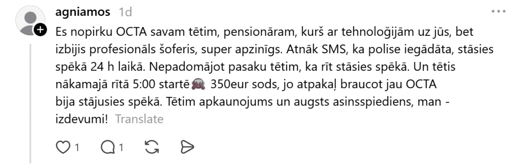 Другие люди также включились в обсуждение в соцсети. Кто-то высказывает мнение, что не понимает, как можно пропустить срок действия OCTA, кто-то другой, наоборот, указывает, что такие ситуации могут случиться с каждым. Ещё кто-то выражает недоумение, почему штрафы такие большие!