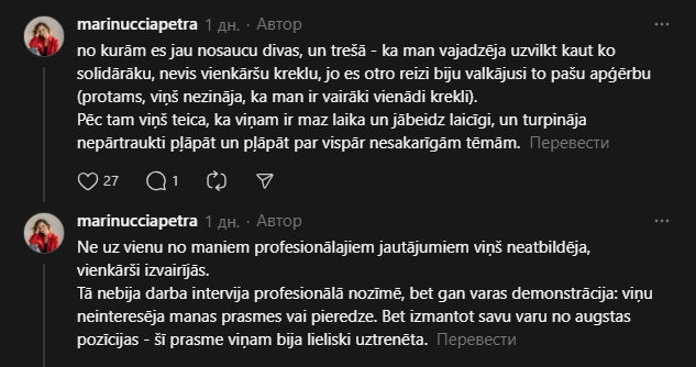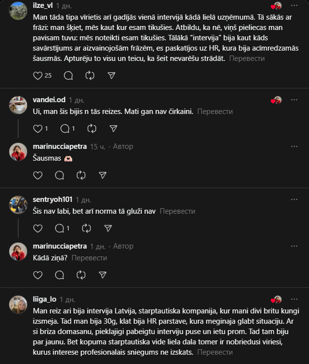 А Лига поделилась своей историей, которая с ней случилась в Латвии при прохождении собеседования в международной компании.