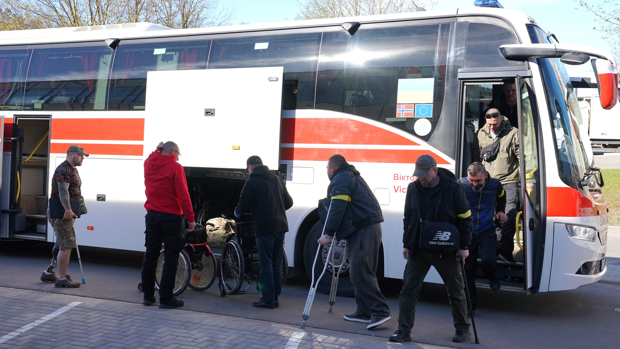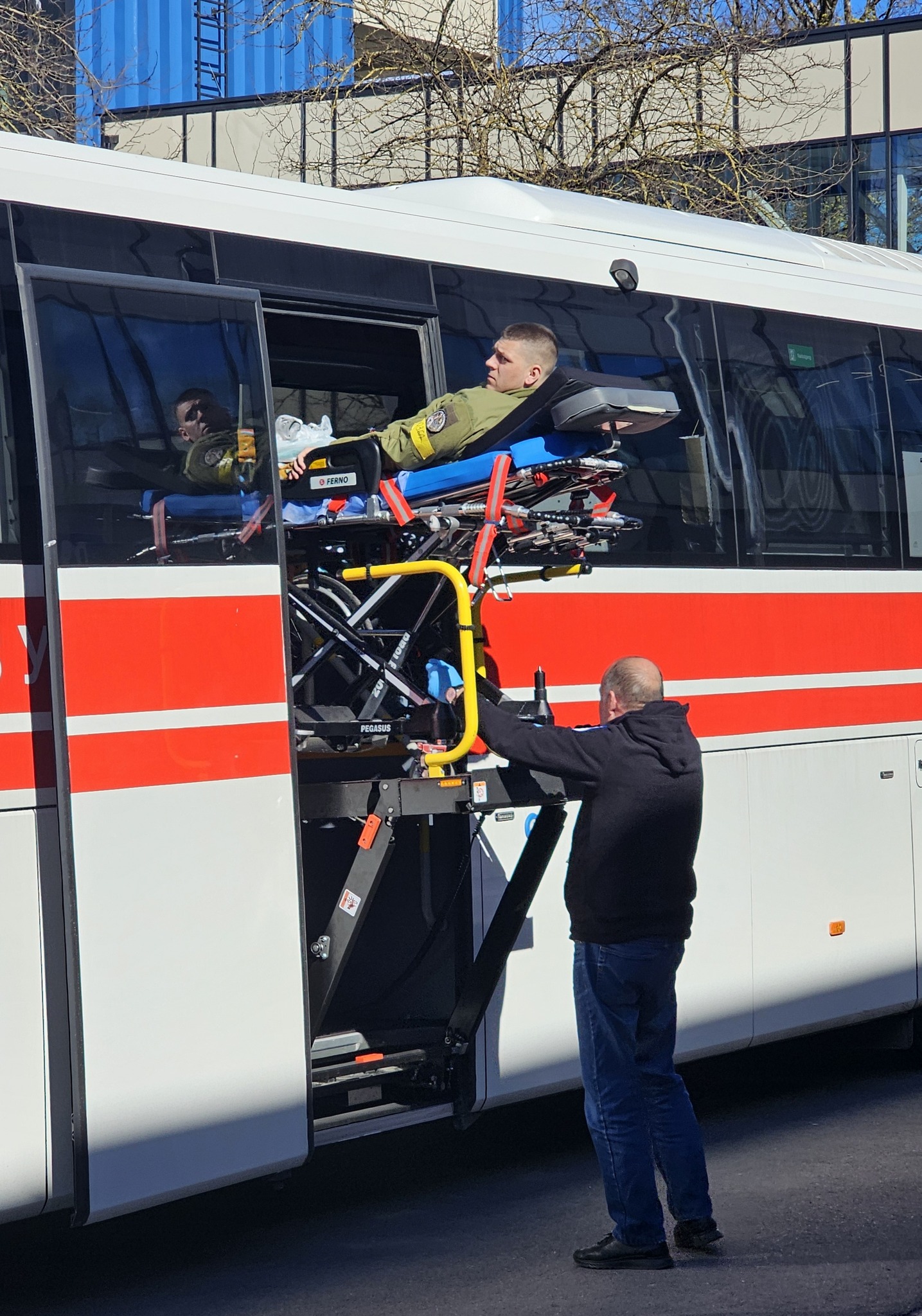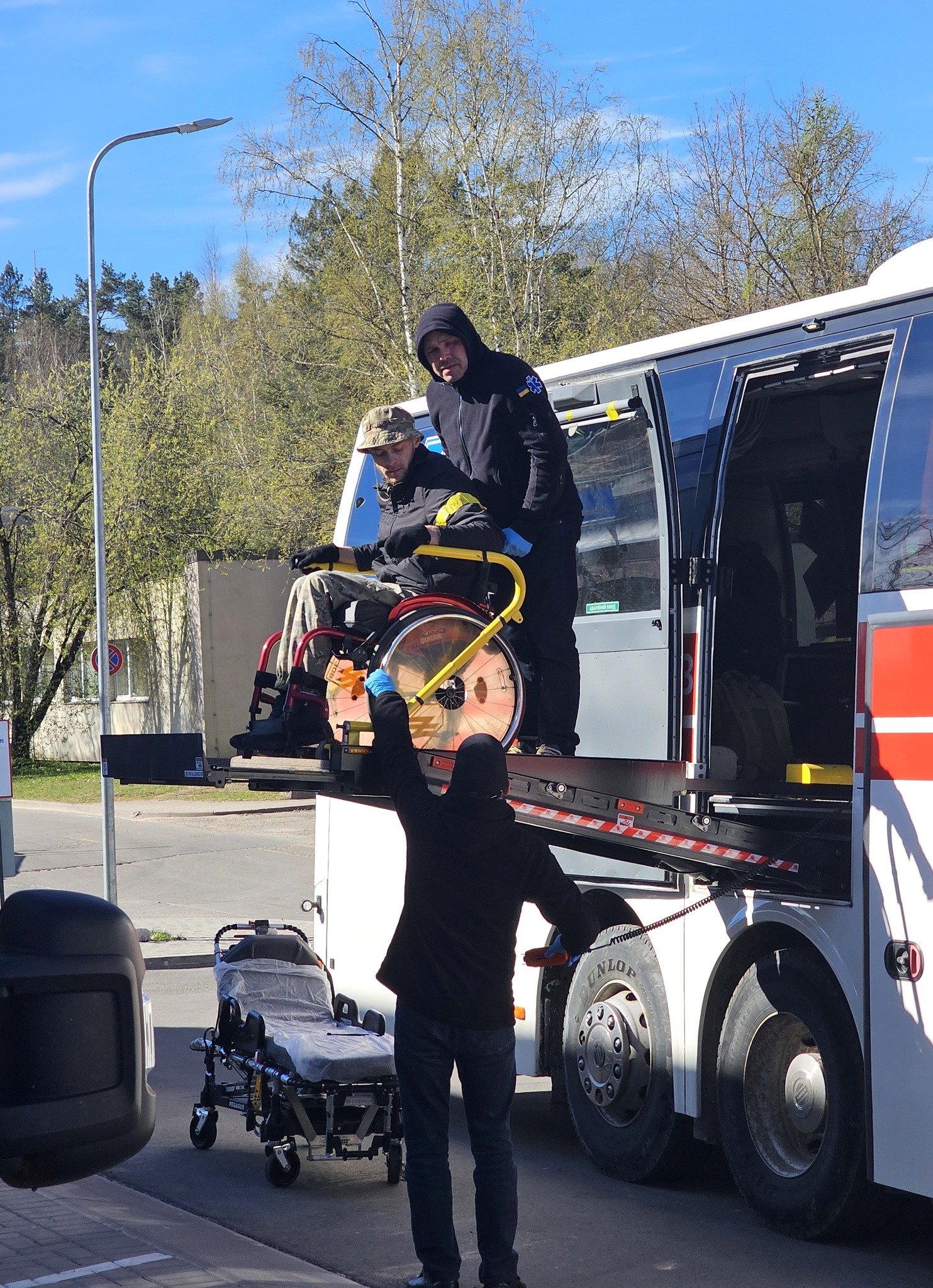 Автобус с украинскими военнослужащими встретили медицинский директор больницы Юрис Николайенко и команда отделения неотложной медицины и приёма пациентов (NMPUK) — врачи Алексей Вишняков, Инесе Ларионова, а также специалисты других профилей и медицинский персонал.