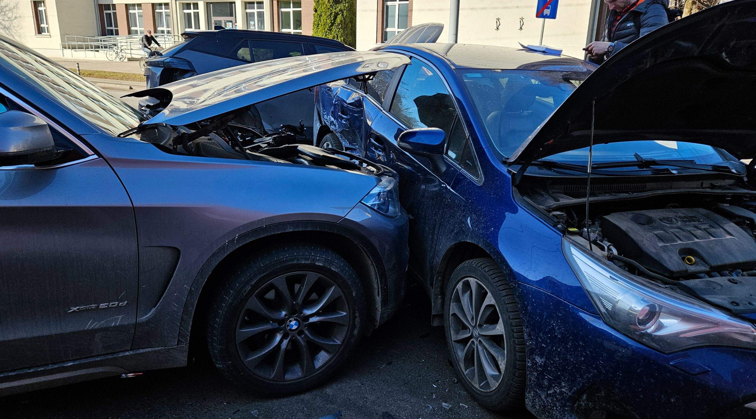 В столкновении участвовали арендованный автомобиль “Bolt Drive” “Peugeot 2008”, а также “Toyota Avensis” и “BMW X5”. Все три автомобиля серьёзно помяты, у двух оторваны колёса. В результате аварии две машины частично выбросило на вымощенную камнем разделительную полосу.