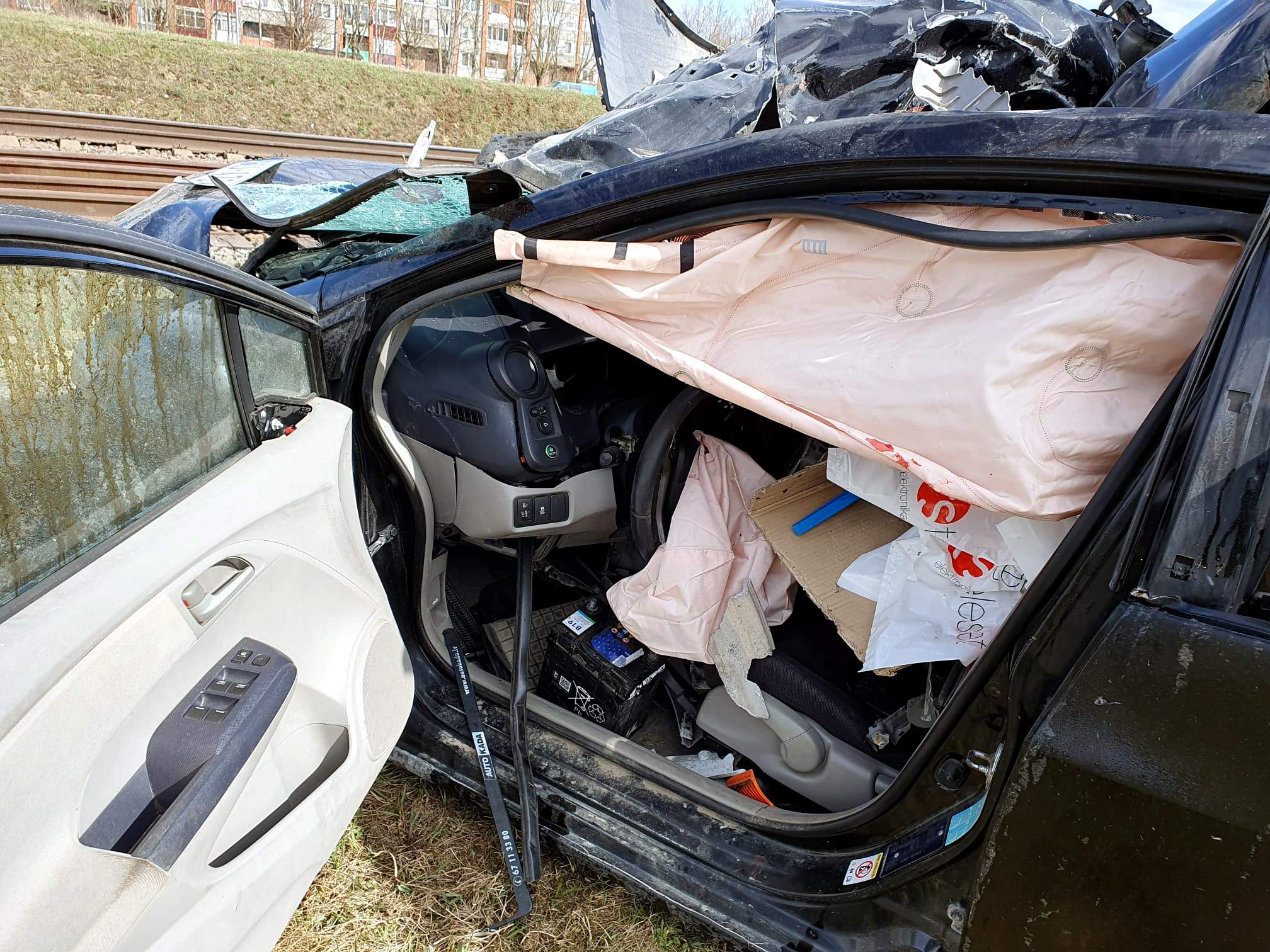 Сегодня в Даугавпилсе на железнодорожном переезде на улице Мотору легковой автомобиль попал под поезд, наблюдало агентство LETA. Поезд приближался к станции, но всё ещё двигался с довольно большой скоростью, тогда как автомобиль после столкновения был сильно разбит.