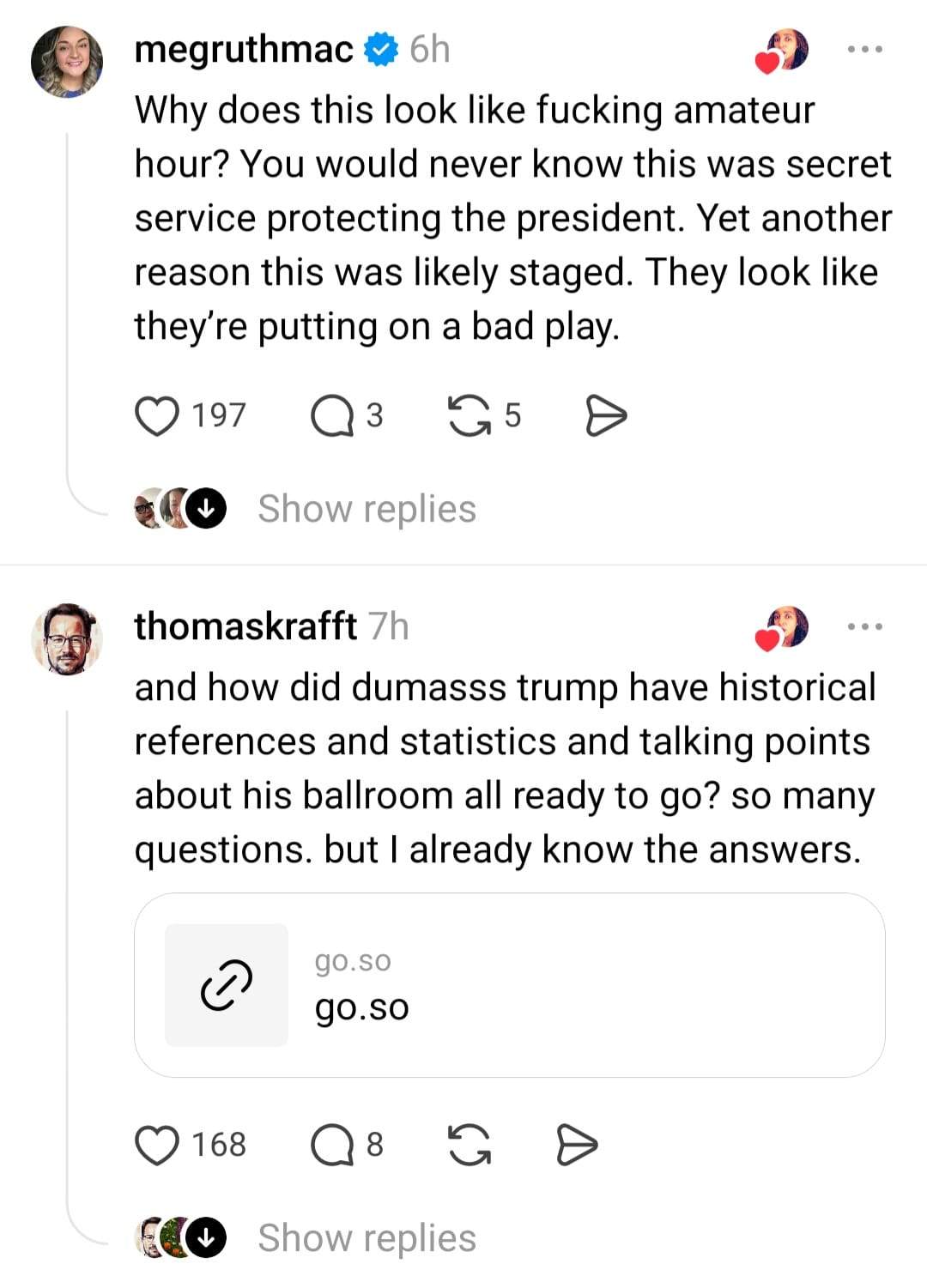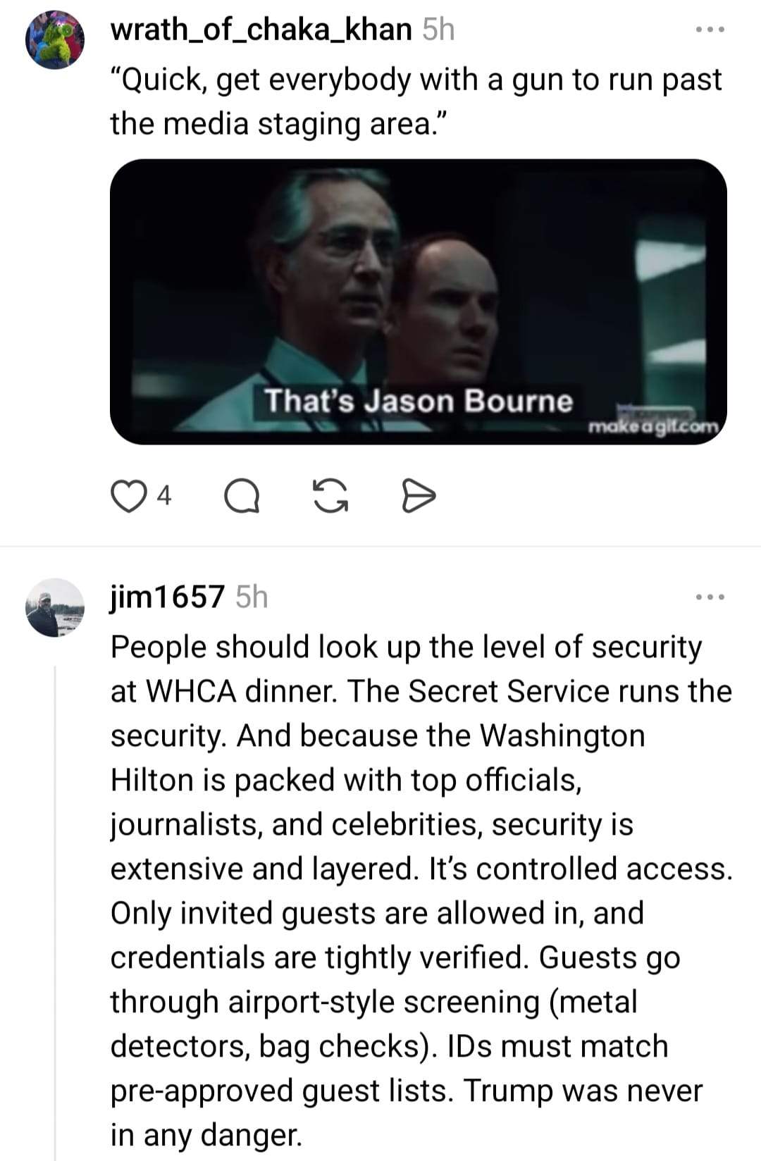 Тем временем другие пытаются опровергнуть эти теории, указывая на строгие меры безопасности на мероприятиях такого уровня: «Безопасность здесь обычно на очень высоком уровне — с проверками, детекторами и контролируемым доступом. Невозможно просто так пронести оружие».