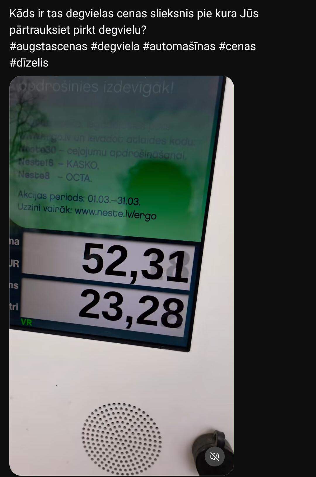Арнис опубликовал видео, на котором видно, как он заправляет автомобиль, и спрашивает: “Какой порог цены на топливо станет для вас тем моментом, когда вы перестанете его покупать?”