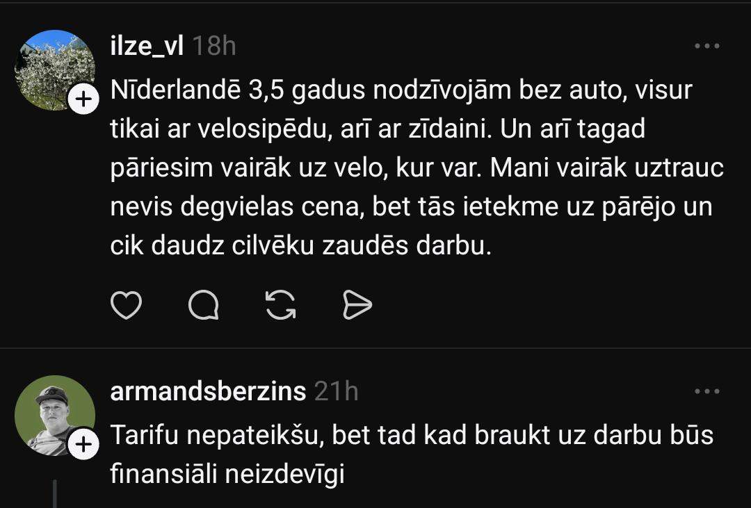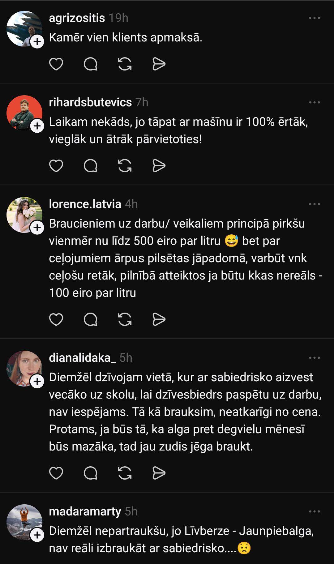Эдгарс всё подсчитал: “Скорее всего, тогда, когда расходы на топливо превысят примерно 25% от зарплаты — тогда это начнёт становиться невыгодным. Пока что это держится ниже примерно 10%, поэтому мысли перестать заправляться ещё нет.”