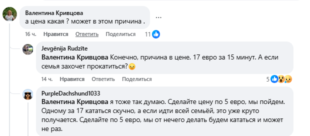 Жители предлагают сделать более доступную стоимость: «Сделайте по 5 евро — и мы бы ходили, даже просто от нечего делать, и, возможно, не один раз».