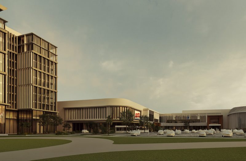 Согласно визуализации, опубликованной в соцсетях, здание планируется построить между магазинами “Depo” и “K-Senukai”. Архитектурное решение предполагает современный комплекс, объединяющий торговые помещения и гостиничный корпус.