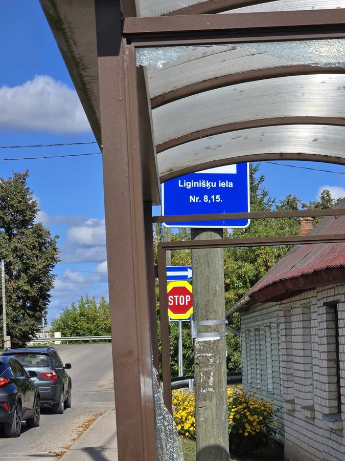 Неизвестные разбили стекло у автобусной остановки на улице Лигинишкю в Даугавпилсе.