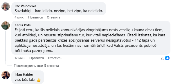 Президент Эдгар Ринкевич также опубликовал в Facebook запись, в которой пишет, что существует возможная угроза в воздушном пространстве, сославшись на информацию приложения “112”. Между тем, жители Латвии стали писать в комментариях к посту президента, что сайт “112” не открывается. И глава государства пост удалил.