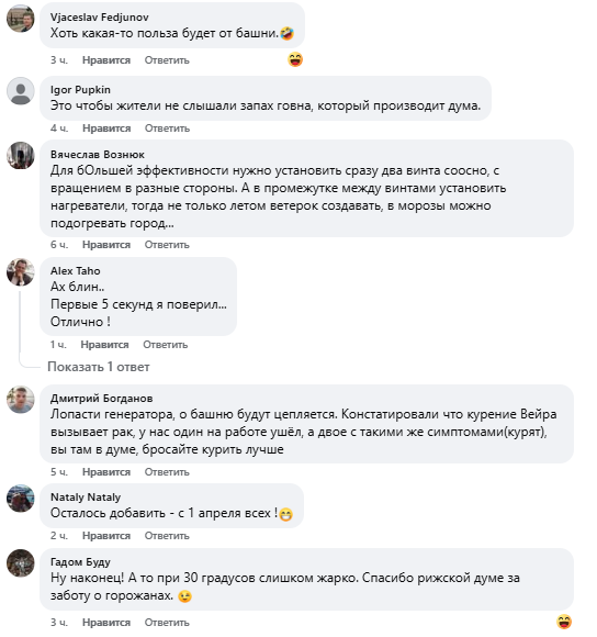 Развлекательный сайт “Необычная Рига”, рассказывающий о рижских местах, зданиях и разных мелочах, которые можно назвать необычными, на этот раз решил поздравить своих подписчиков с 1 апреля – Днем смеха, опубликовав шуточный пост про Рижскую телебашню на Кипсале.