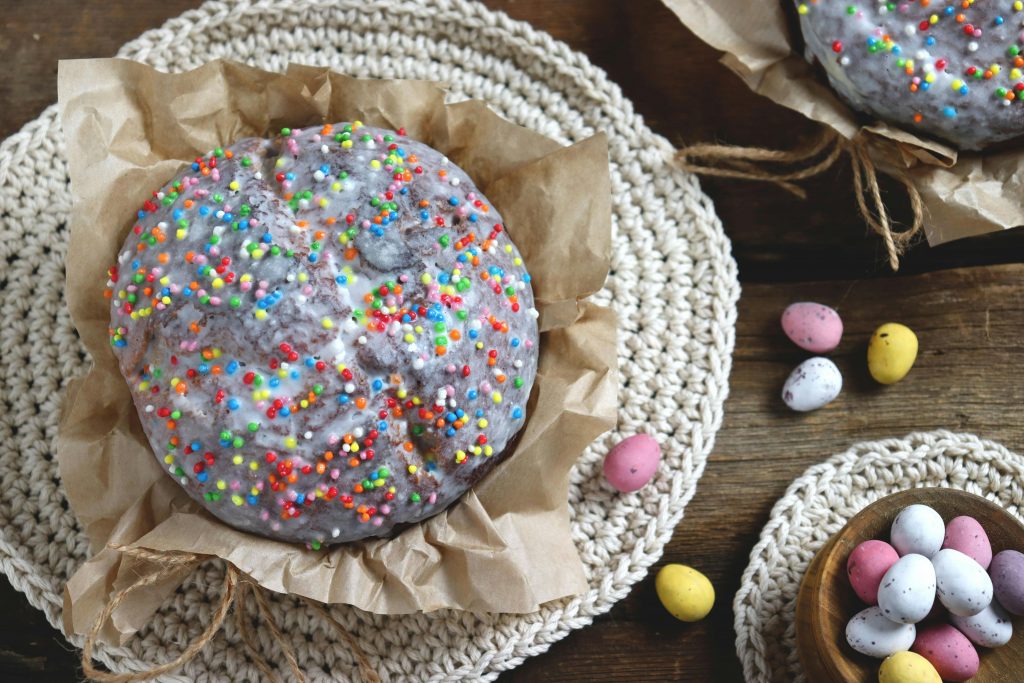 Кулич: Высокий сдобный хлеб, украшенный глазурью, символизирующий присутствие Христа за столом.