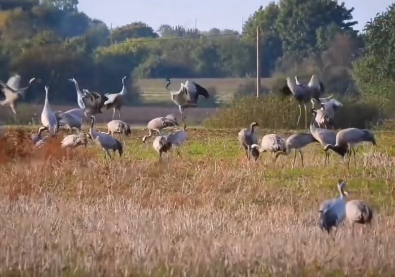 В социальных сетях появилось видео, снятое в Латвии Иветой Юръяне: большая стая журавлей готовится к отлёту в тёплые края.