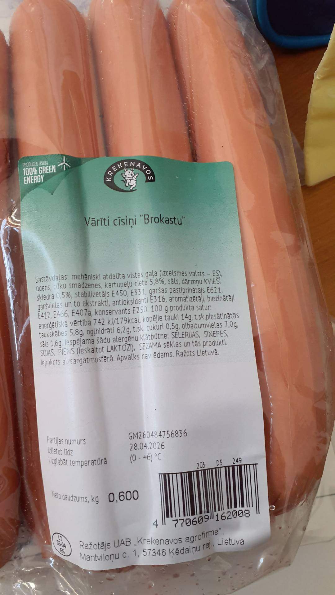 В ходе лабораторного контроля Продовольственно-ветеринарная служба (PVD) выявила в произведённых в Литве варёных сосисках для завтрака в упаковке 600 г (в защитной атмосфере) (производитель — «UAB Krekenavos agrofirma»; Литва LT 53-04, № партии GM260484756836; срок годности — 28.04.2026) превышение допустимого количества листерий (Listeria monocytogenes).
