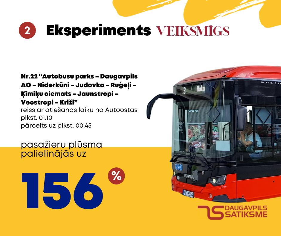 4. Введен новый рейс на маршруте № 22 Križi – Vecstropi – Jaunstropi – Ķīmiķu ciemats – Jaunbūve – Ruģeļi – Judovka – Nīderkūni – Daugavpils AO – Dzelzceļu stacija с временем отправления от конечной остановки Križi в 01.47.
