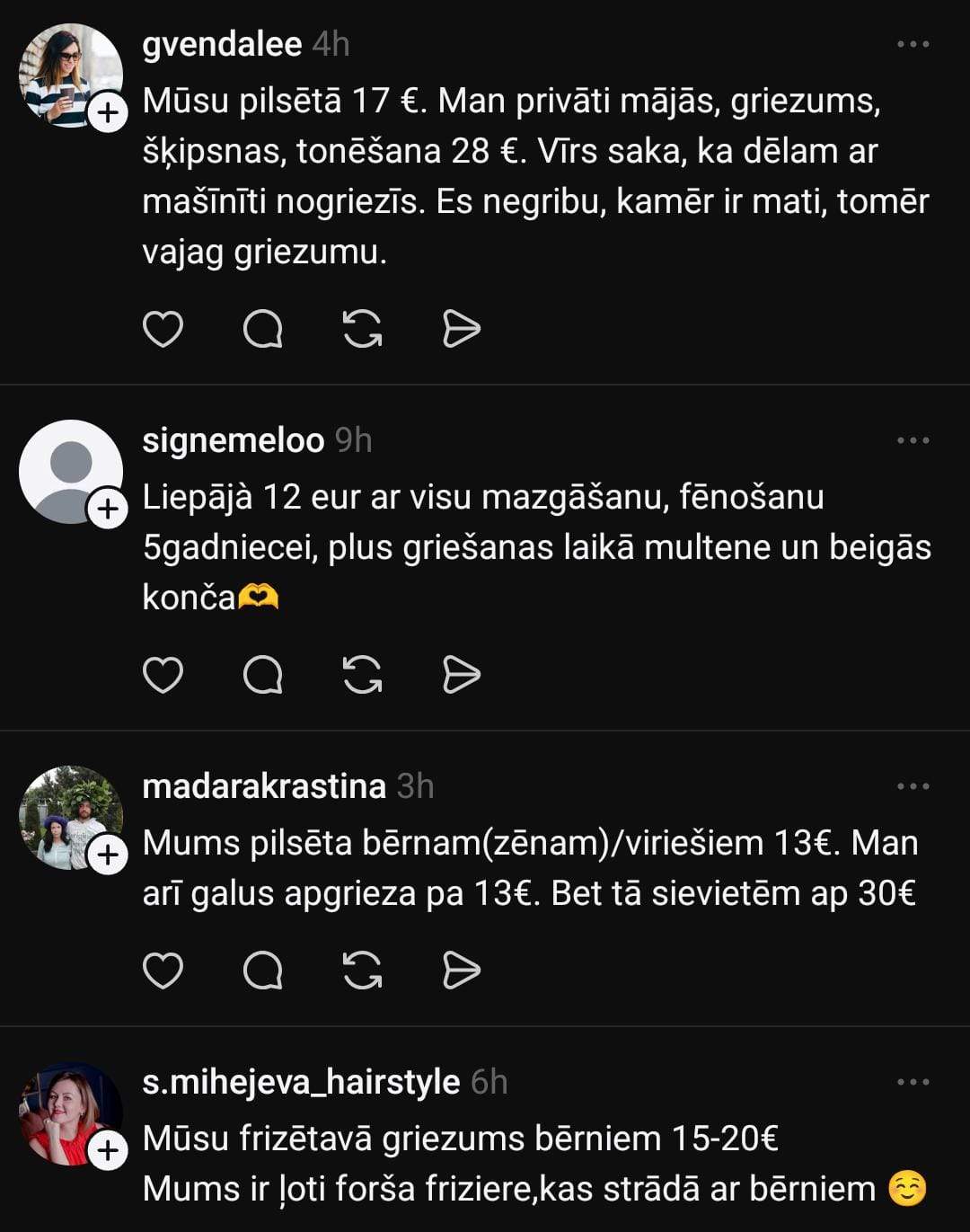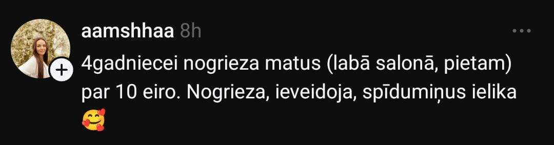 В свою очередь, Марта делится положительным опытом: «В ТЦ Aleja есть салон “Persona”, там моей дочери неделю назад красиво подстригли за 17 евро.»