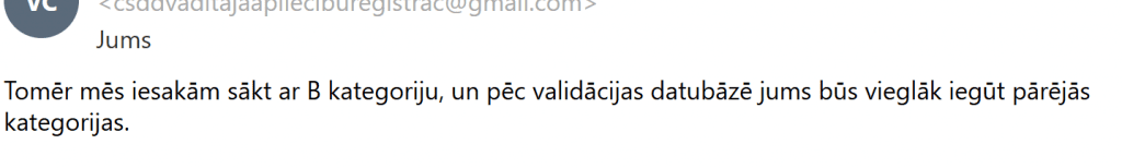 Одновременно было указано, что рекомендуется начинать с категории B, потому что после её «регистрации в базе данных» получение остальных категорий якобы будет проще.