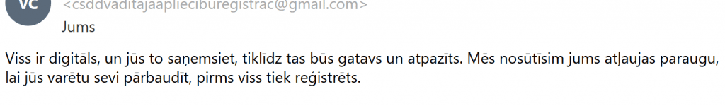 Следующим шагом было предложение продолжить разговор вне электронной почты, используя мессенджер «WhatsApp», чтобы можно было начать регистрацию файлов в базе данных CSDD. На этот шаг я, однако, не согласилась.