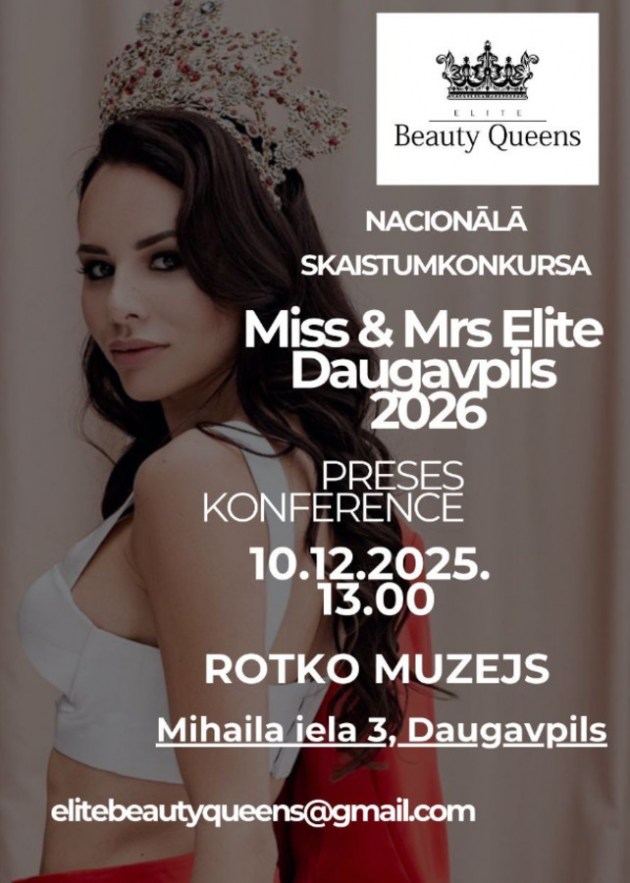 В Даугавпилсе пройдет новый масштабный и престижный проект — национальный конкурс красоты “Miss & Mrs Elite Daugavpils 2026”, который станет уникальным культурным событием для региона и возможностью представить Латгалию на международном уровне.