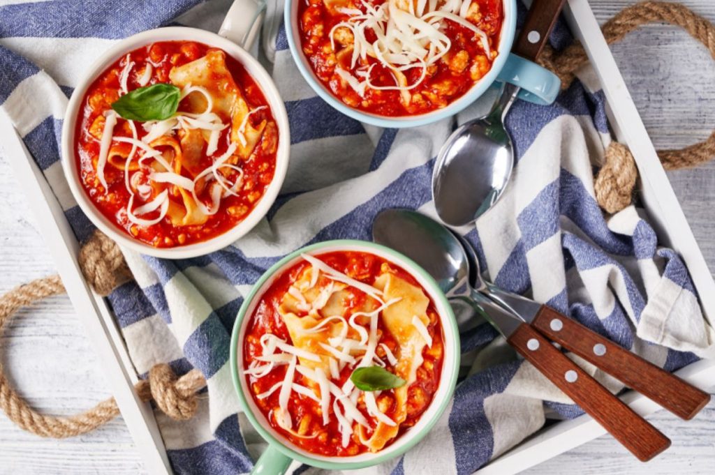 Суп лазанья — с фаршем, помидорами и пастой