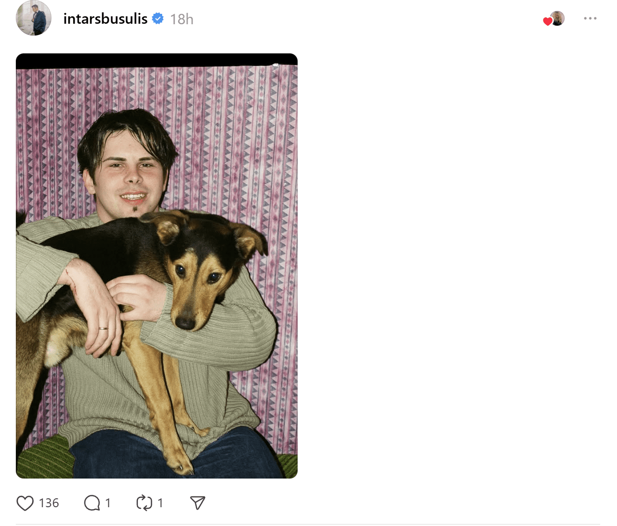 Пользователи социальной сети Threads делятся своими воспоминаниями и фотографиями молодости — точнее, тем, как они выглядели 20 лет назад. На призыв показать себя 20 лет назад откликнулся и любимый латвийцами певец Интарс Бусулис.