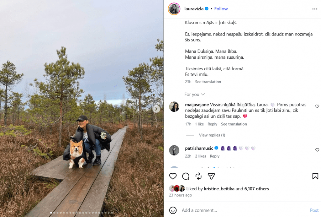 В социальных сетях глубоким личным и эмоциональным постом поделилась инфлюенсер Лаура Визла, рассказав, что из жизни ушёл её многолетний четвероногий друг.