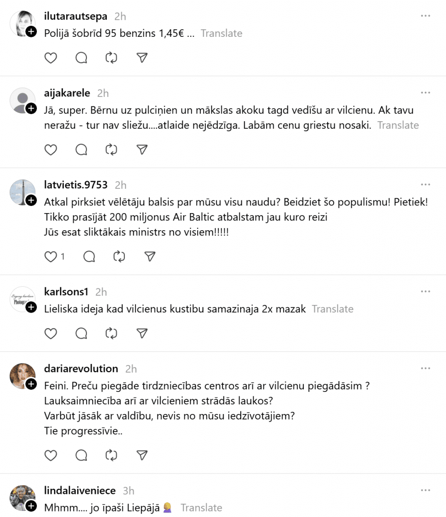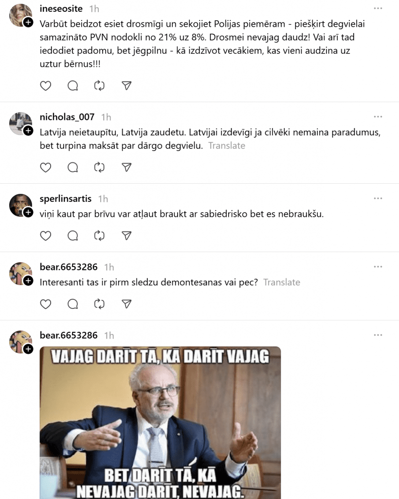 Вот что говорят жители Латвии о предложении министра на платформе «Threads»!