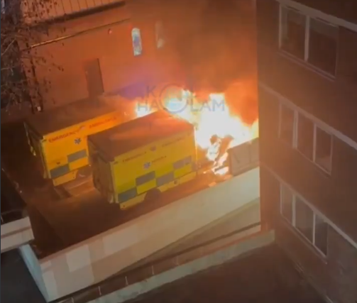 🚨 BREAKING: Major antisemitic arson attack in Golders Green, London destroys all ambulances (at least 4) of Hatzola Northwest — a volunteer Jewish emergency service providing 24/7 medical aid. @Breaking911 has seen footage of the attackers. pic.twitter.com/GwCWXG38qB