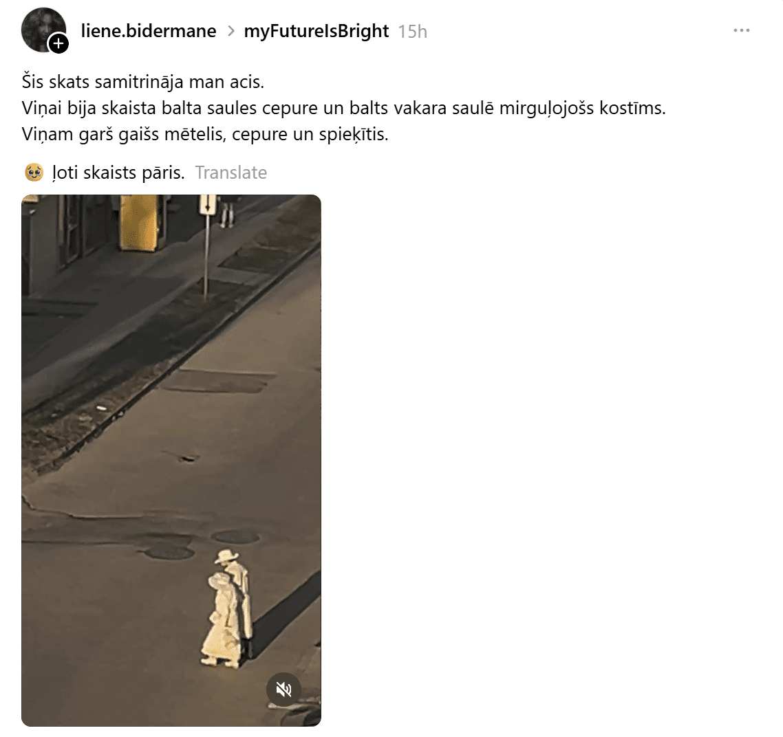 Другая комментаторша добавляет: “Я замечала эту пару в Старой Риге. Не могла оторвать от них взгляд, и улыбка на моём лице оставалась ещё долго, хотя они уже давно прошли мимо.”