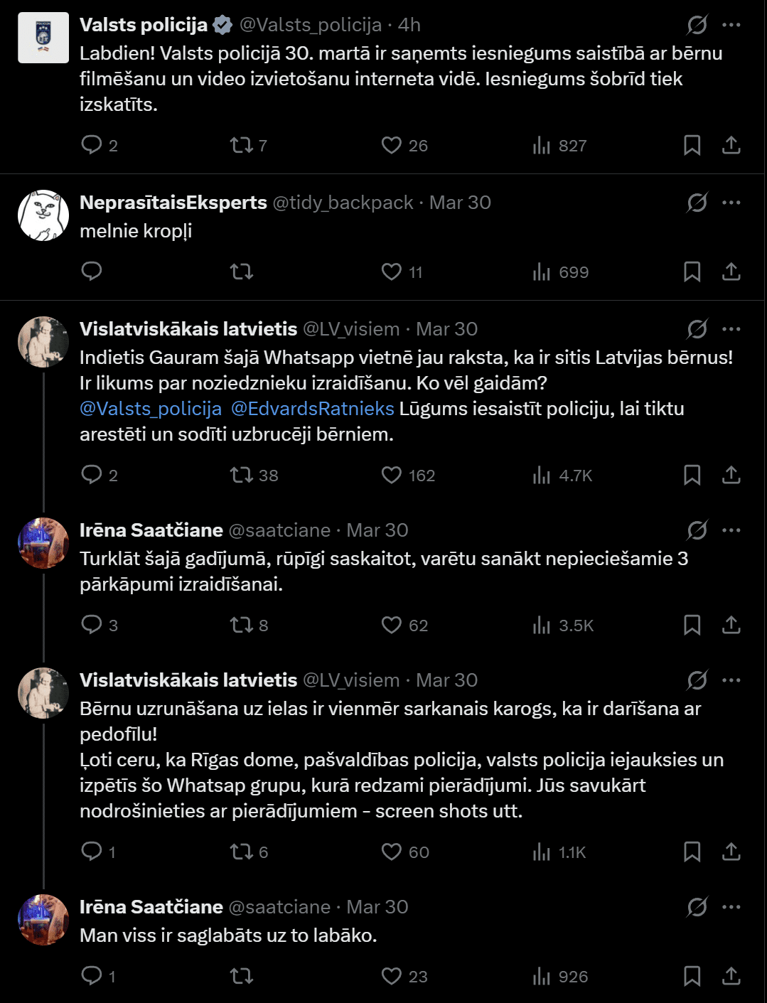 Рижан в социальных сетях взволновало размещённое в чате «Wol&Bolt Whatsaap» видео с двумя несовершеннолетними детьми. В этой группе Whatsapp состоят 468 участников.