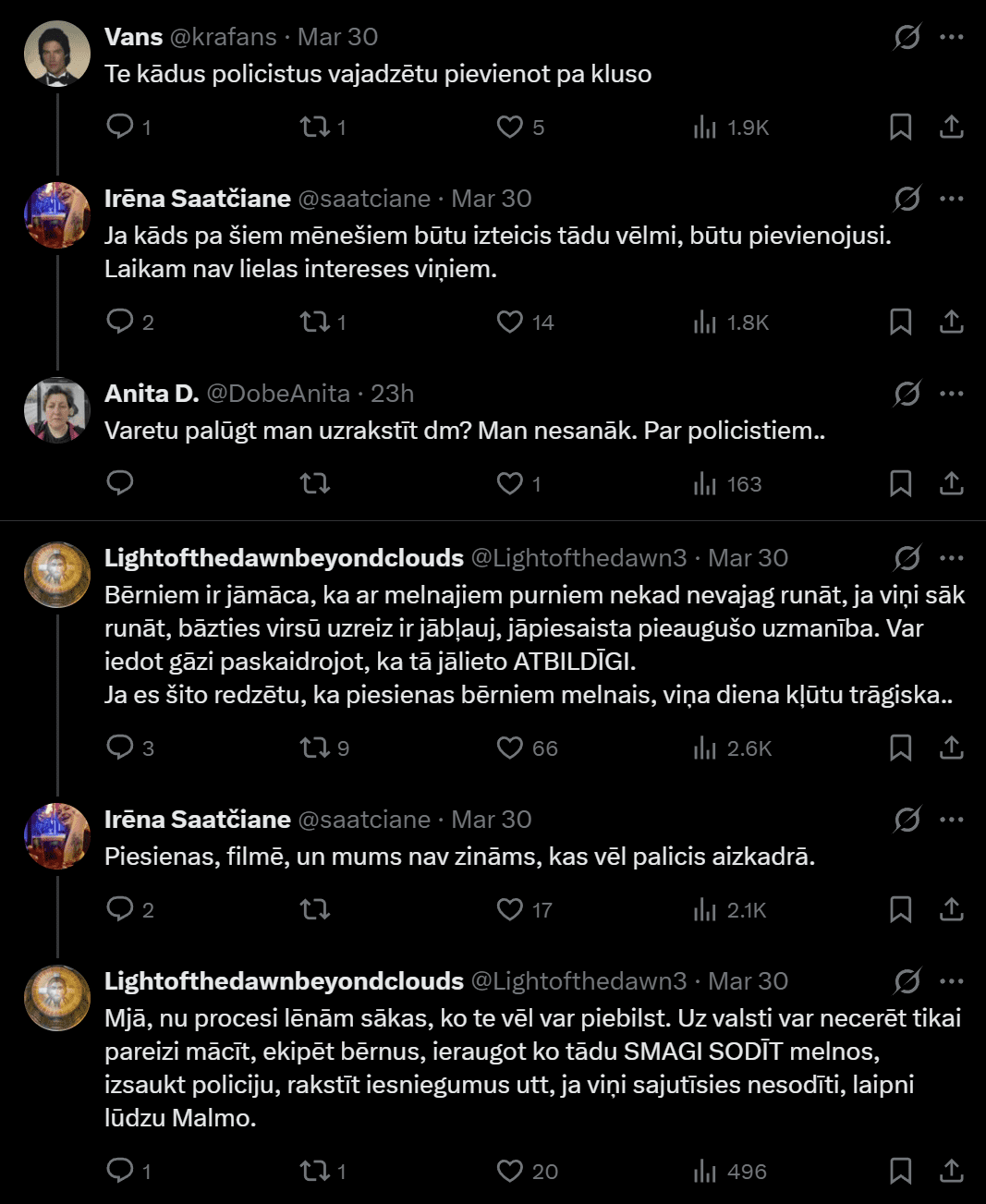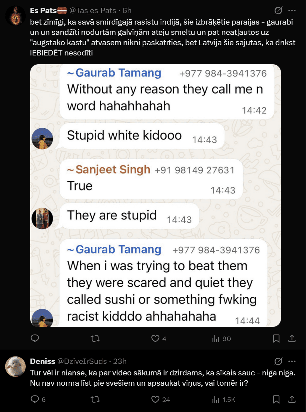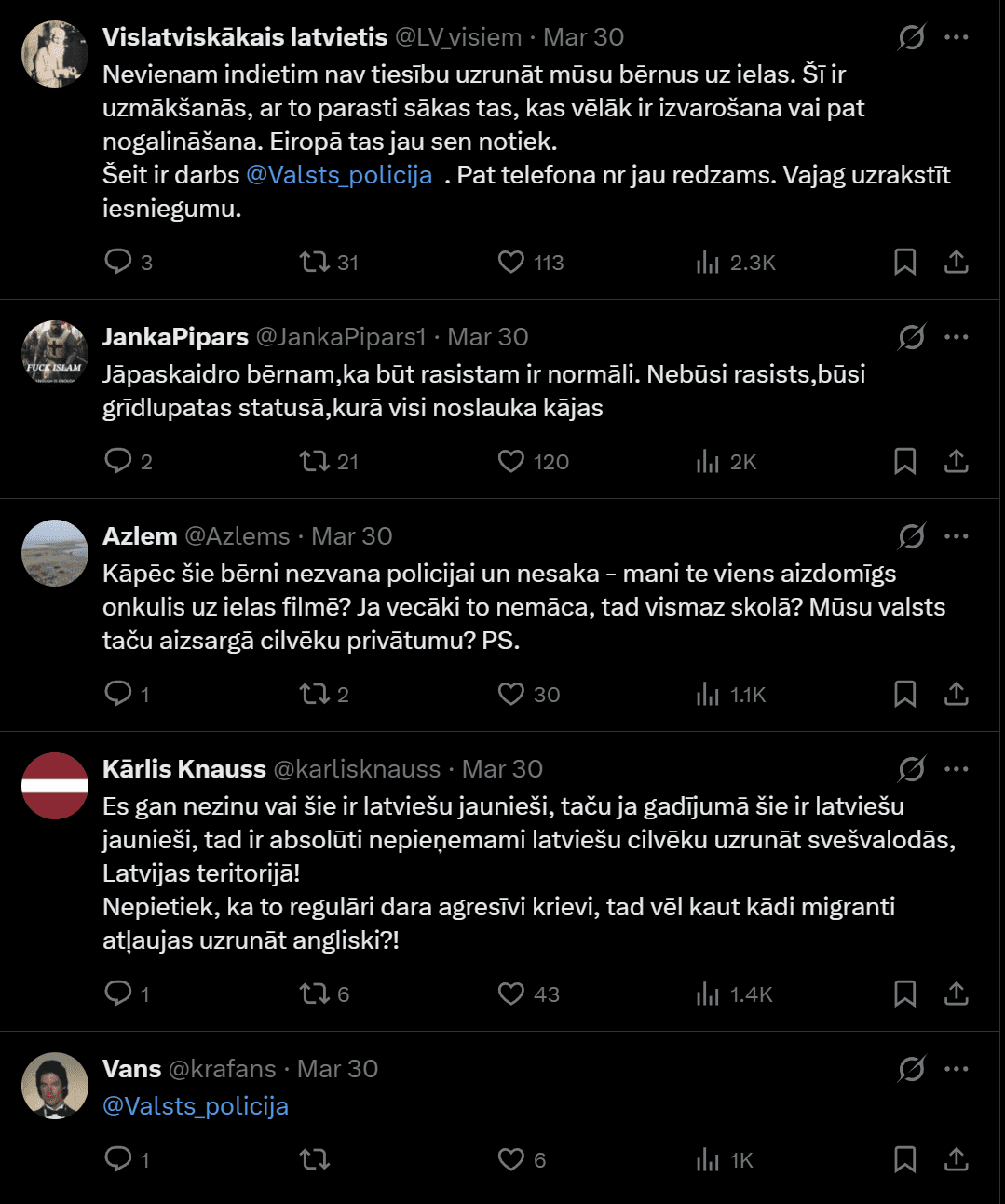 Государственная полиция под публикацией подтверждает, что по этому случаю получено заявление и в настоящее время оно рассматривается. В комментариях люди обсуждают то, что мальчики сами грубо обзывают взрослых иностранцев, однако переписка других совершеннолетних иностранцев вызывает ещё большую тревогу, поскольку детей на английском называют глупыми, а на сленге хинди говорится, что детей нужно избить.