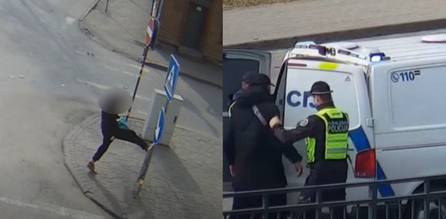 Утром 25 марта работники Отдела видеонаблюдения Муниципальной полиции Даугавпилса, осуществляя ежедневный мониторинг, зафиксировали в центре города поврежденный элемент дорожной инфраструктуры – сбитый со столба знак. Осмотрев место происшествия и изучив архив видеонаблюдения, стражи порядка установили момент совершения правонарушения, а также идентифицировали подозреваемого.