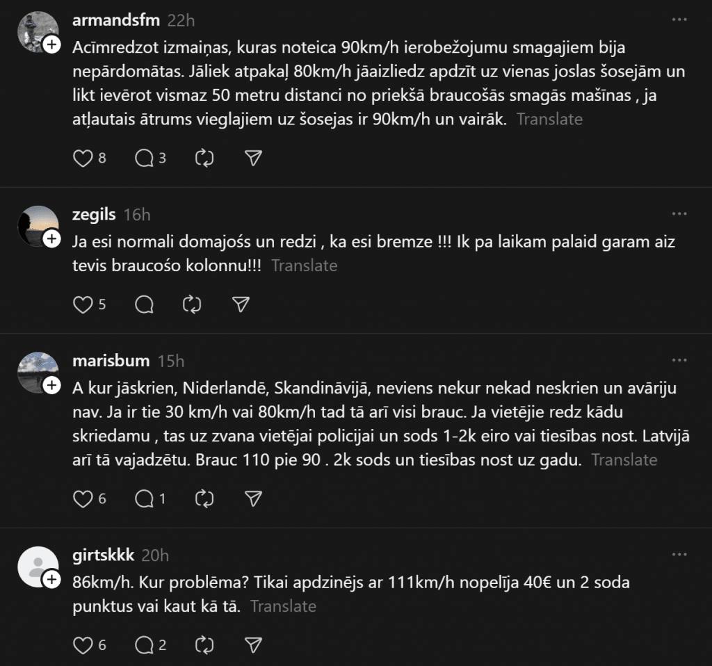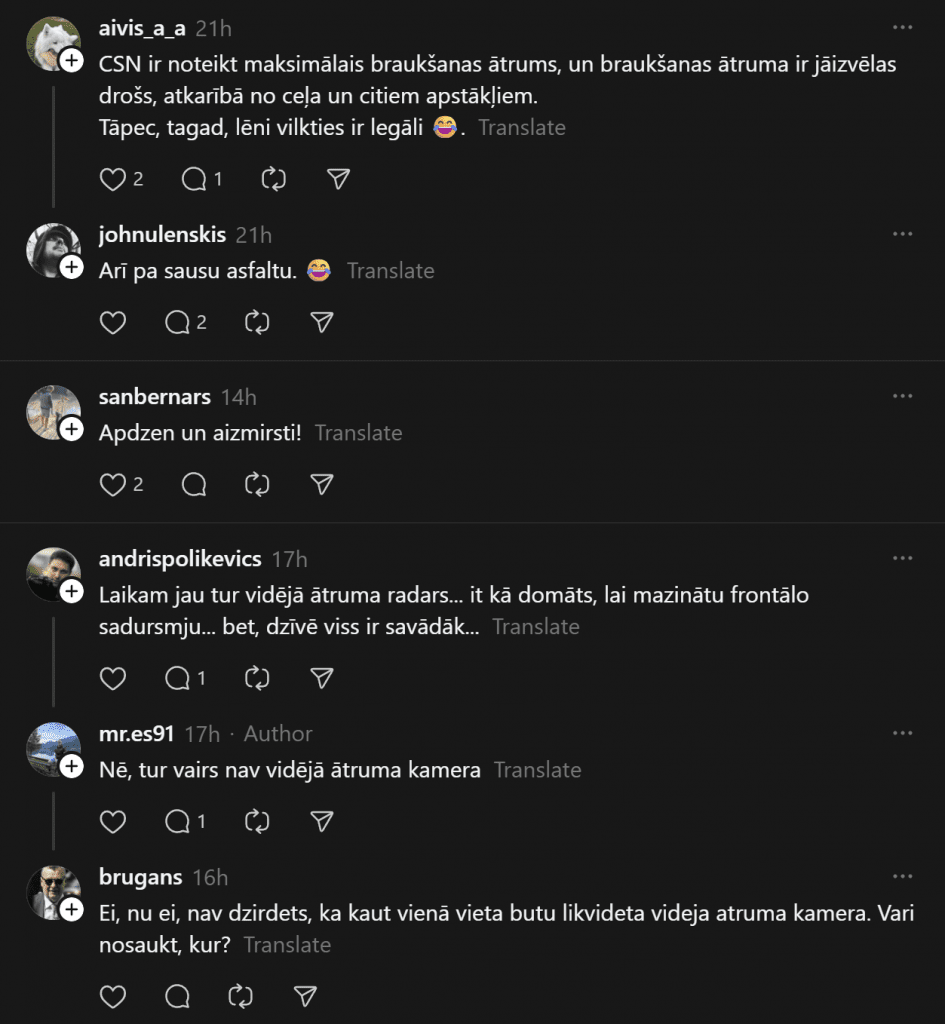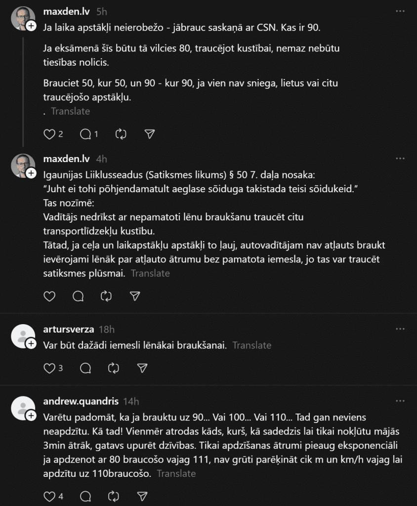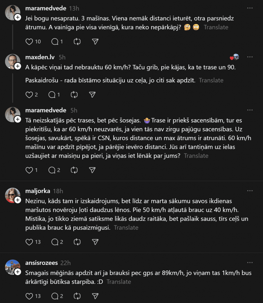 При движении за городом водители часто уделяют больше внимания разрешённой скорости, однако не менее важным фактором безопасности является правильная дистанция между транспортными средствами. Недостаточная дистанция — одна из самых частых причин аварий на шоссе, особенно в ситуациях, когда едущий впереди автомобиль внезапно тормозит. Хотя вне населённых пунктов в Латвии разрешённая скорость может достигать 90 или даже 110 км/ч, при такой скорости существенно увеличиваются время реакции и тормозной путь.