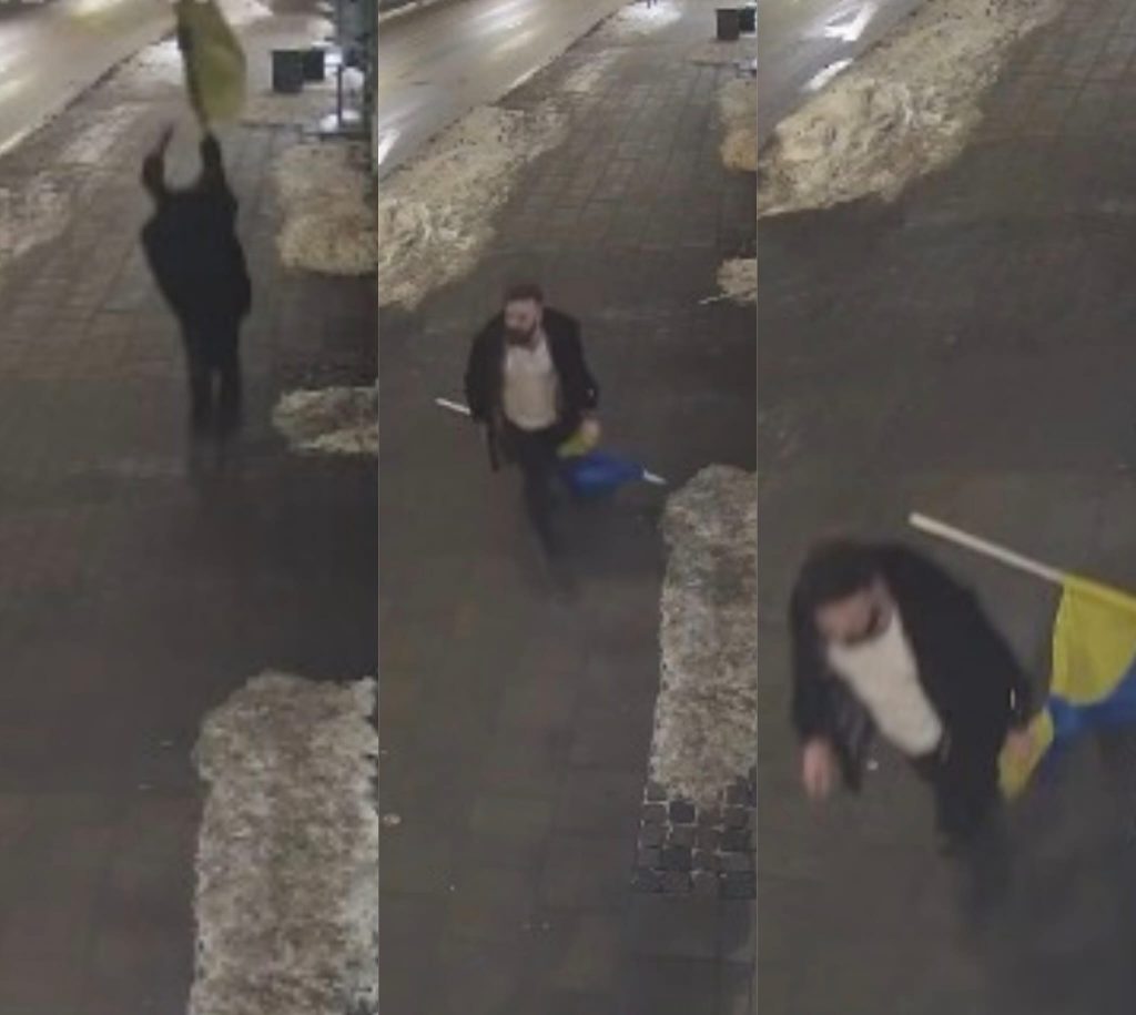 Рижское Восточное управление Госполиции разыскивает мужчину, запечатлённого на видео, который 13 февраля этого года в Риге, на улице Александра Чака, повредил государственный флаг Украины.