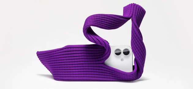 Стильная, как считают в Apple, новинка, напоминающая то ли носок, то ли карман с лямками – детище тесного сотрудничества компании с ISSEY MIYAKE. Трикотажный аксессуар изготовлен методом 3D-вязания и подходит для любого iPhone и любых других карманных устройств.