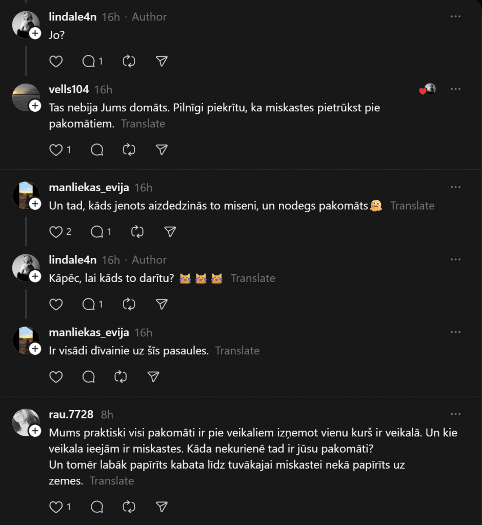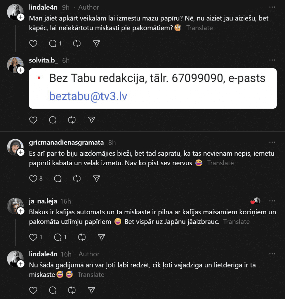 Ещё кто-то с иронией добавляет: «Рижская дума может установить, но сколько это будет стоить — 5000 евро за одну урну?» Есть и более скептические сценарии: «А потом кто-нибудь её подожжёт, и сгорит пакомат».