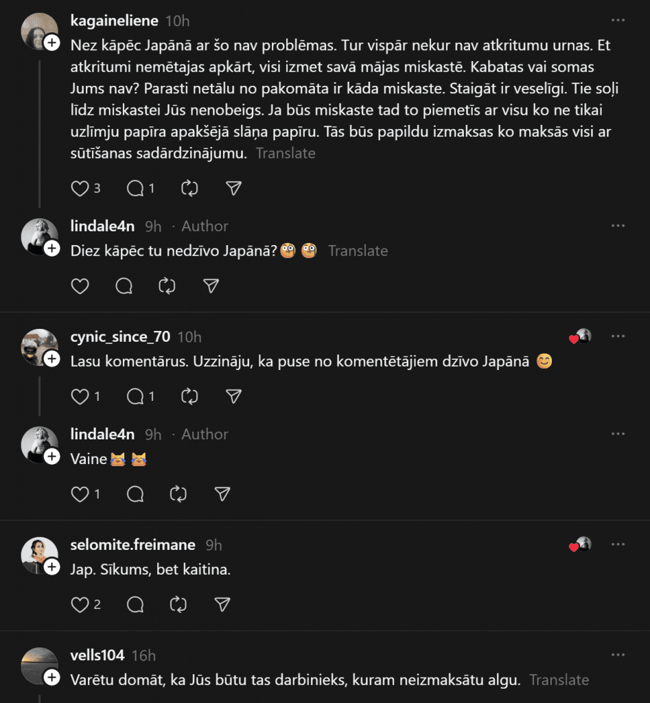 Кто-то пишет: «Просто убирайте за собой сами, вы не какие-то короли». Другой добавляет, что в других странах это нормально: «Давайте учиться у японцев — там на улицах вообще нет урн. Все носят мусор с собой и выбрасывают дома».