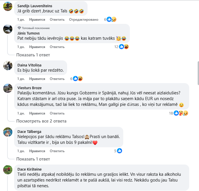 - Dace Tālberga: «Не горжусь такой рекламой в Талси! 🙈 Просто и банально. Визитная карточка Талси — это 9 холмов! ❤️»